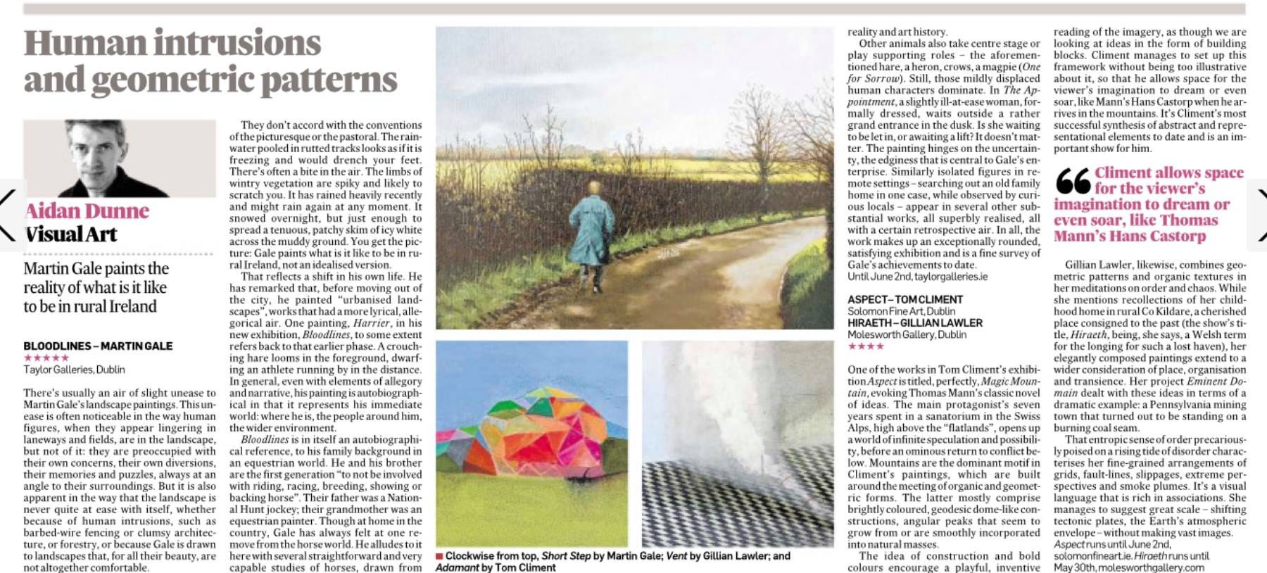 Aspect Tom Climent. Solomon Fine Art, Balfe St (next to the Westbury Hotel), Dublin Until June 2 solomonfineart.ie