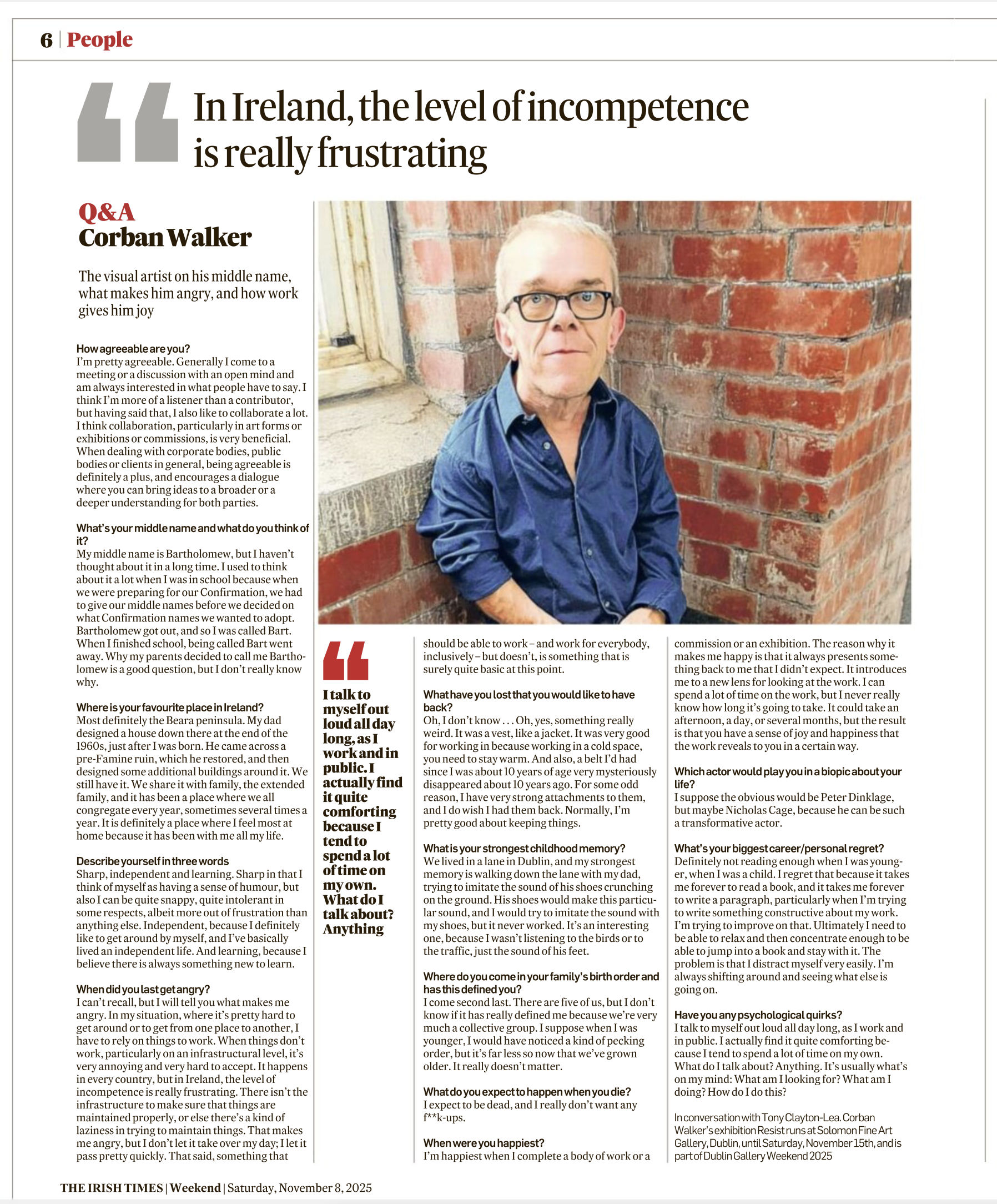 IRISH TIMES: Q&A WITH CORBAN WALKER