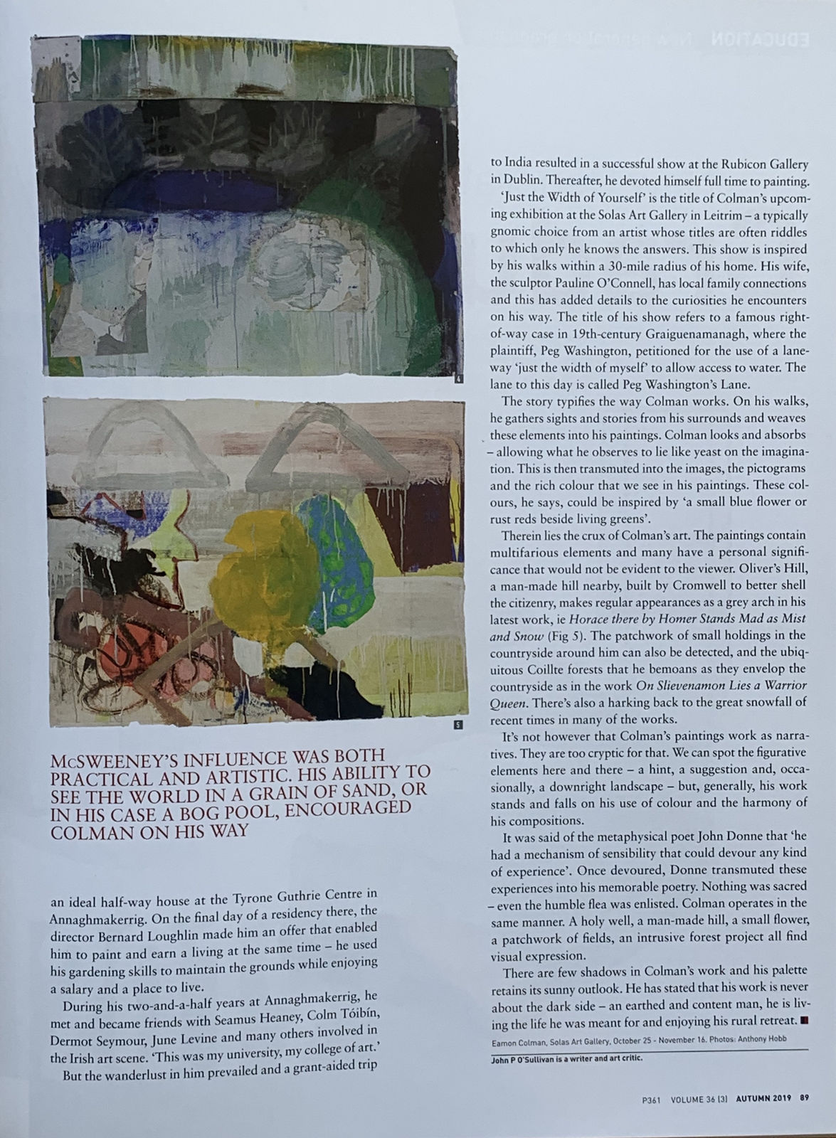 Eamon Colman will be having a major solo exhibition here at Solomon Fine Art: 7 - 29 February 2020